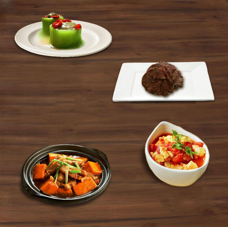 套餐內容:牛腱切片 Bio南瓜醬燒排骨 甘貝黃瓜鑲肉 番茄炒蛋
