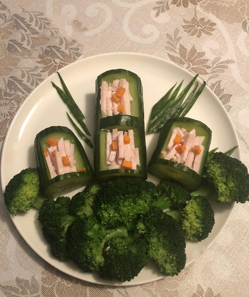 材料:小黃瓜 雞肉丁 綠花椰菜