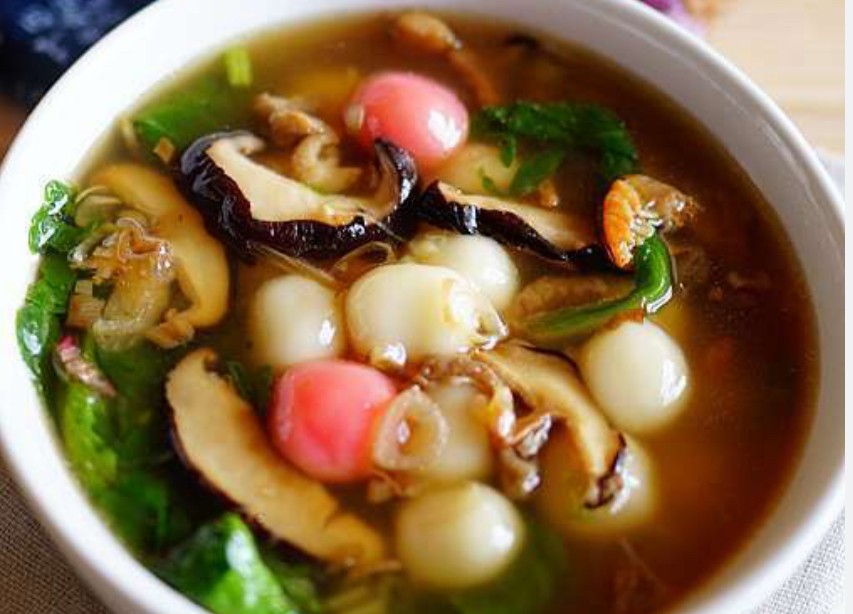 材料:自製湯圓 湯頭(香菇 蝦米 五花肉等)