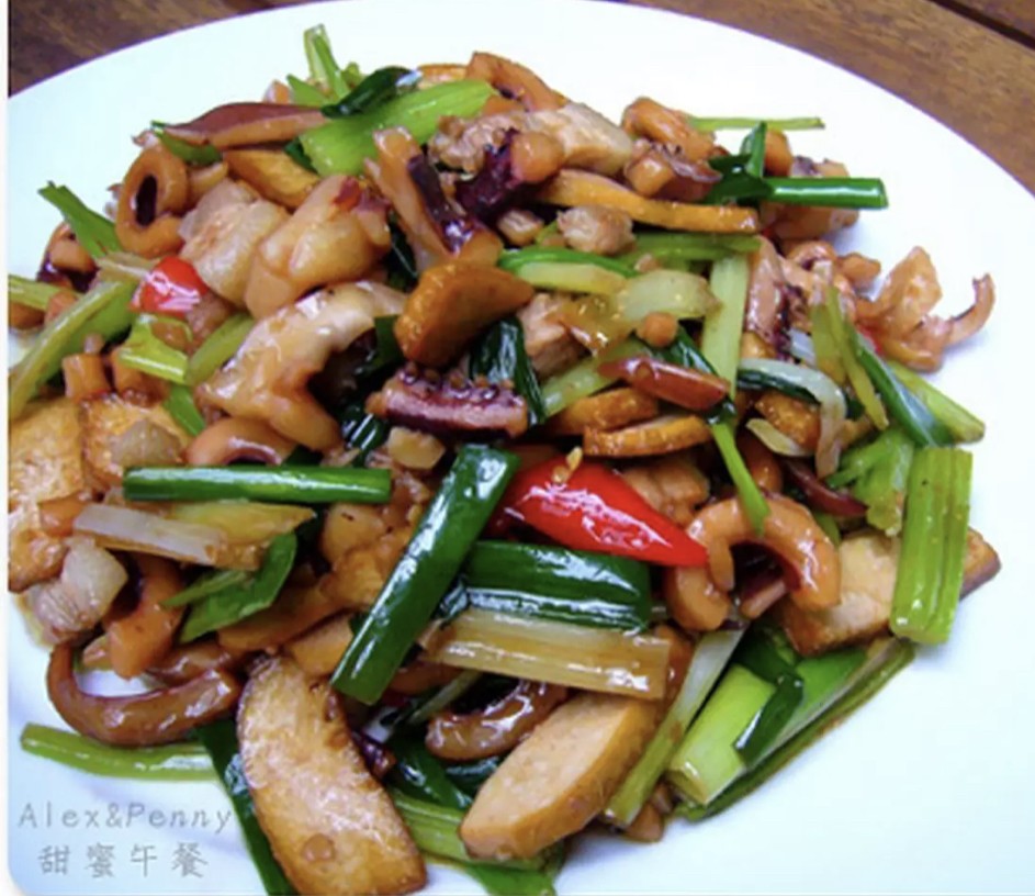 材料:乾魷魚 豆乾 芹菜 肉絲等