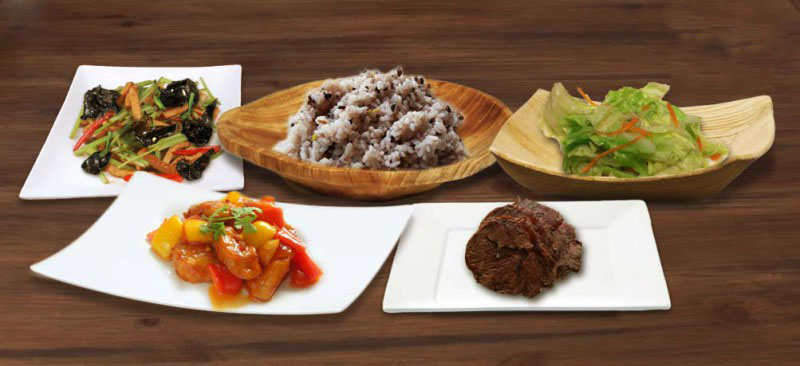 套餐內容: 牛腱片+糖醋魚片+芹菜木耳炒豆干+青菜(照片僅供參考) +五穀米飯