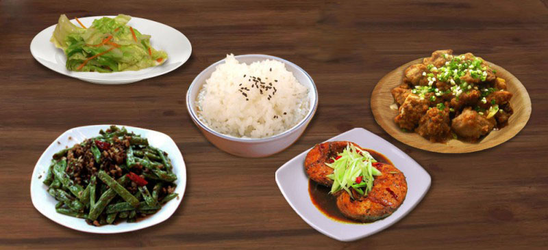 套餐內容:粉蒸排骨 紅燒魚片 乾扁四季豆 青菜(時菜)白米飯